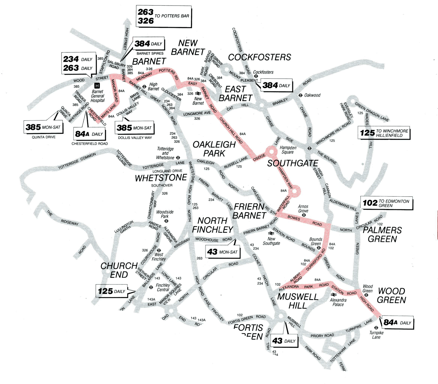 ARNOS GROVE STATION - Hampden Square - New Barnet - BARNET CHURCH -: Mays Lane - BARNET Chesterfield Road (SDO jnys)