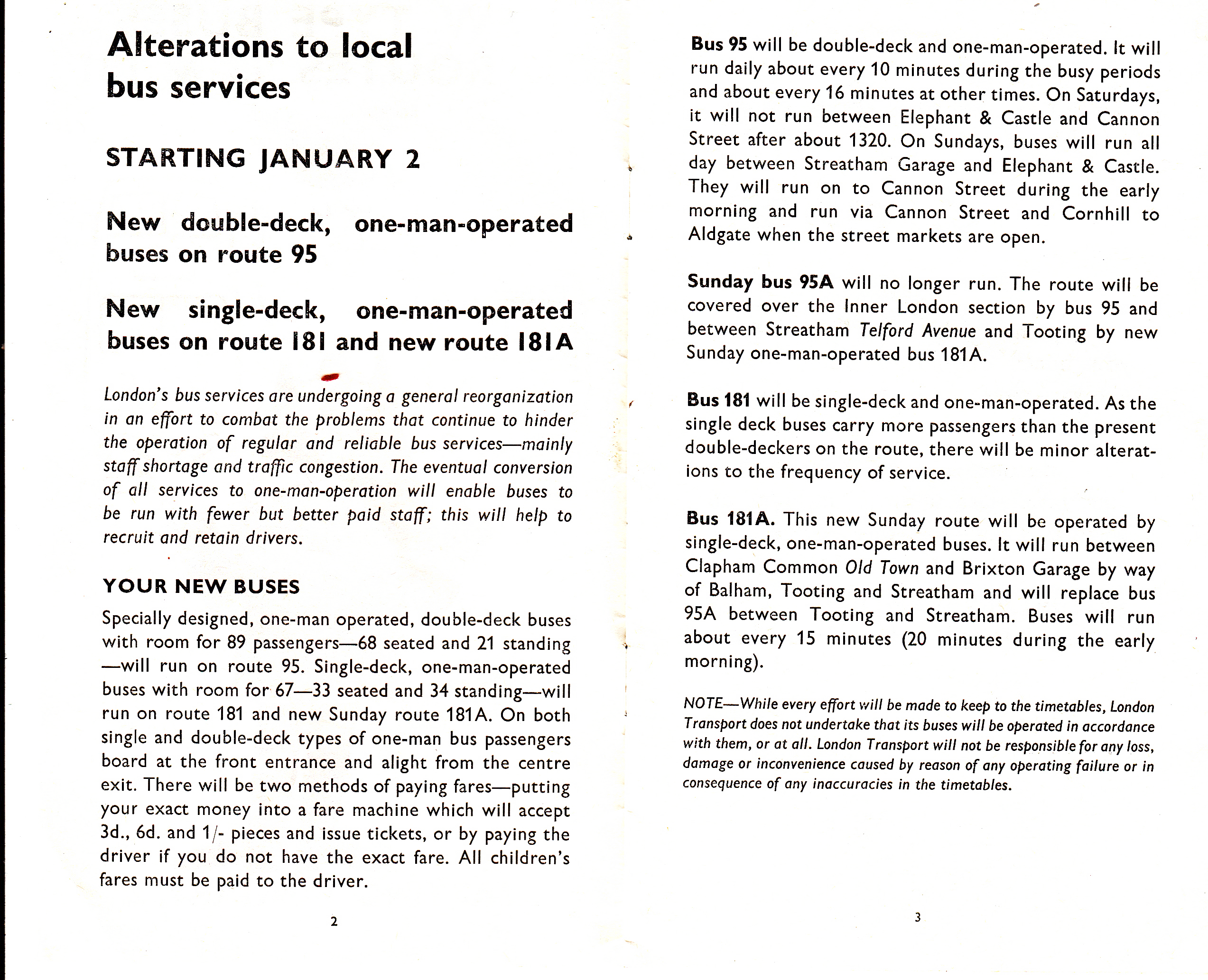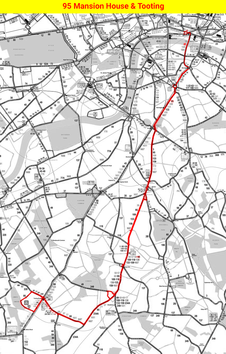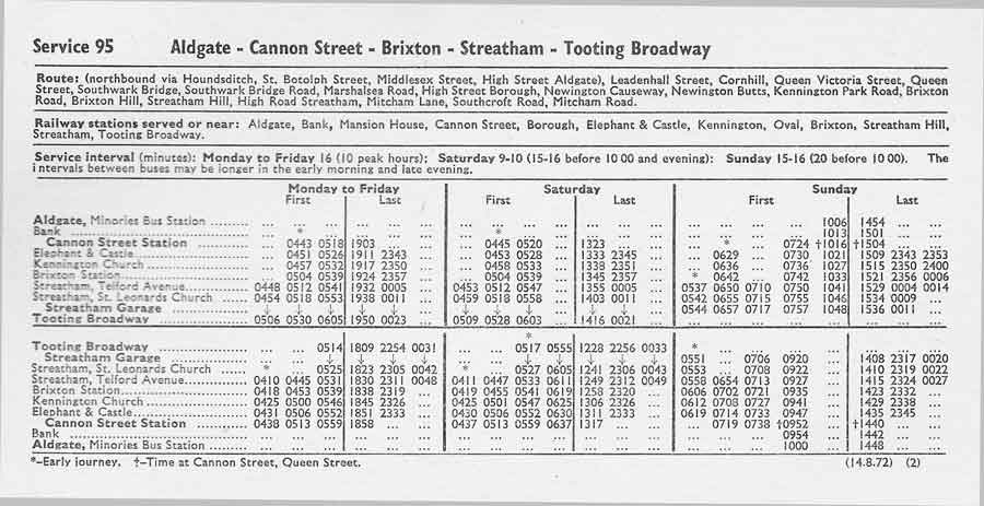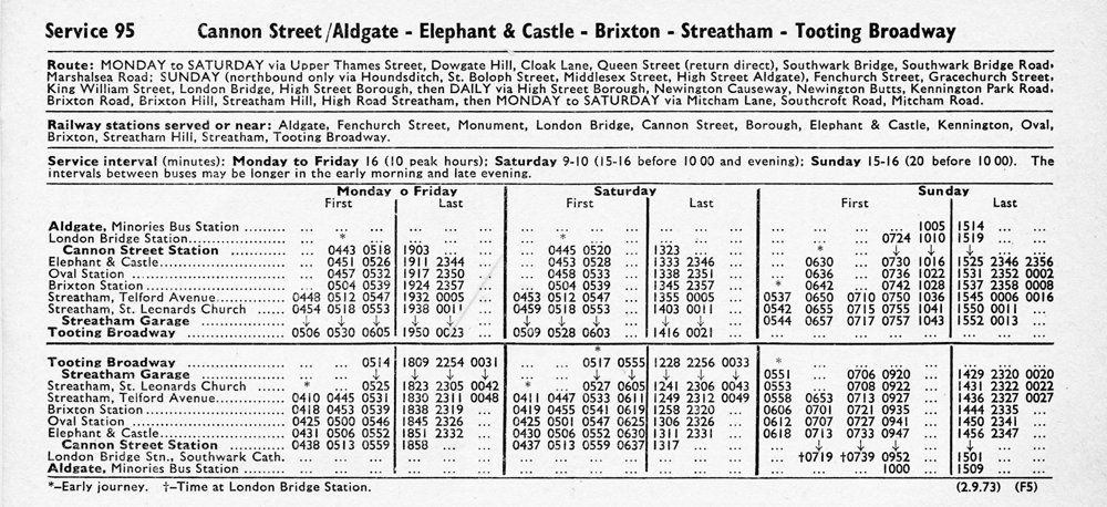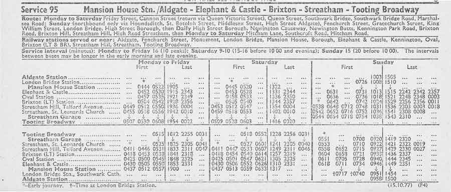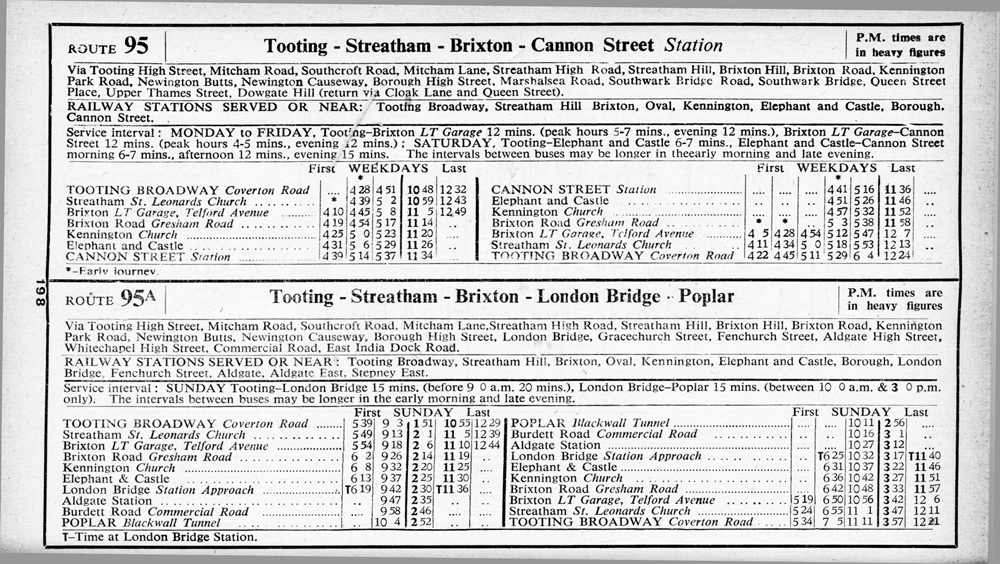 Route diverted at Borough to Aldgate and Poplar - renumbered 95A.