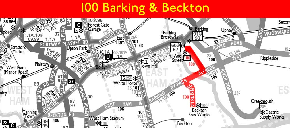 BARKING Axe Street - Gascoigne Road - Jenkins Lane - BECKTON Gas Works ( Irregular Daily service )