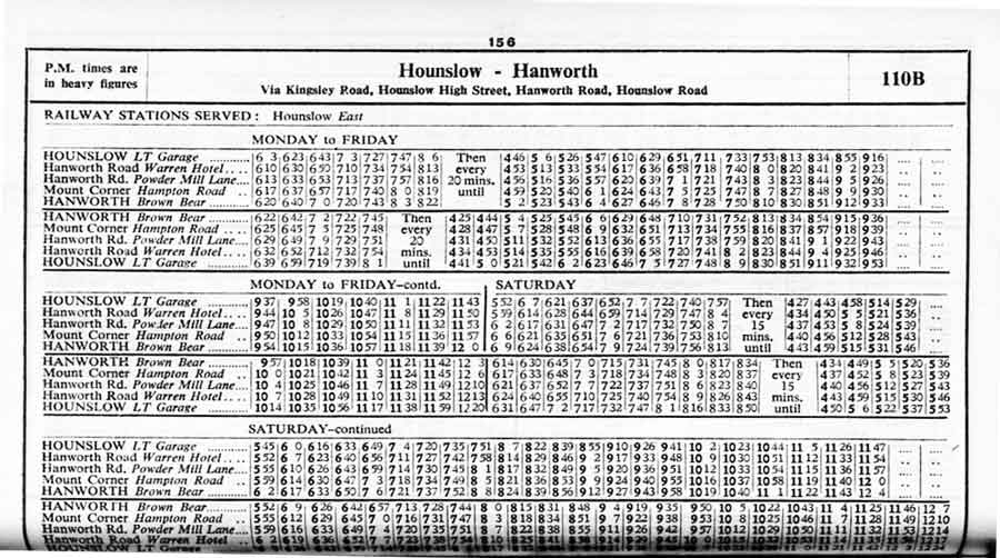 NORTHFIELDS STATION ( Mon-Sat peaks ) - Osterly - Great West Road - Lampton Corner - HOUNSLOW GARAGE ( Mon-Sat ) - Hanworth Road - HANWORTH Brown Bear ( Mon-Sat )