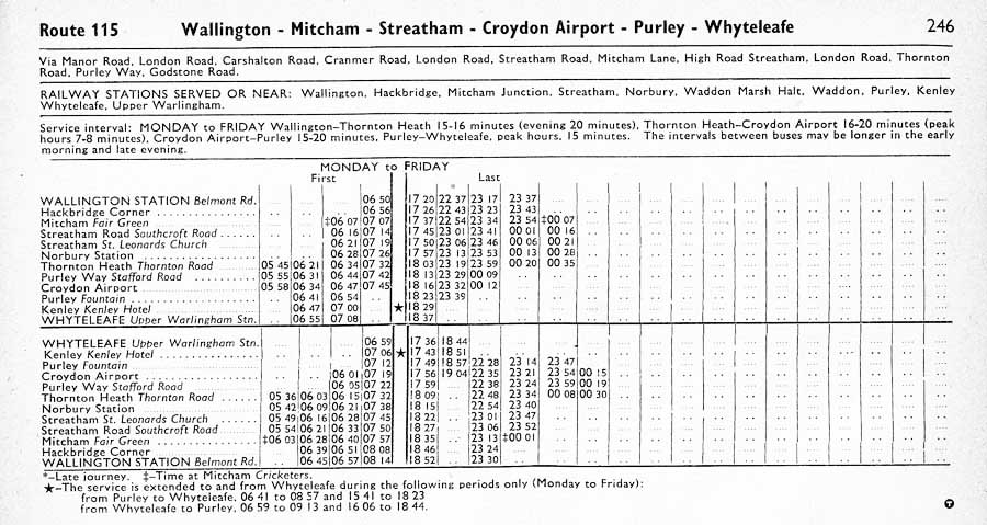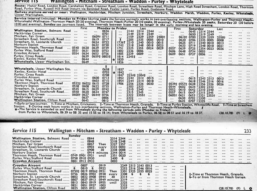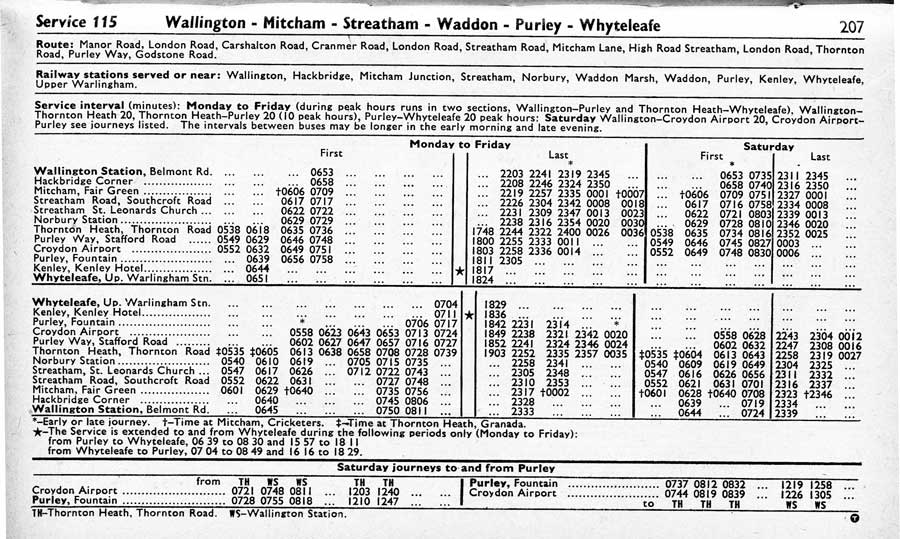 WALLINGTON - CROYDON AIRPORT (Sat) - PURLEY (Mon-Fri/Sat jnys) - WHYTLEAFE(Mon-Fri peaks)