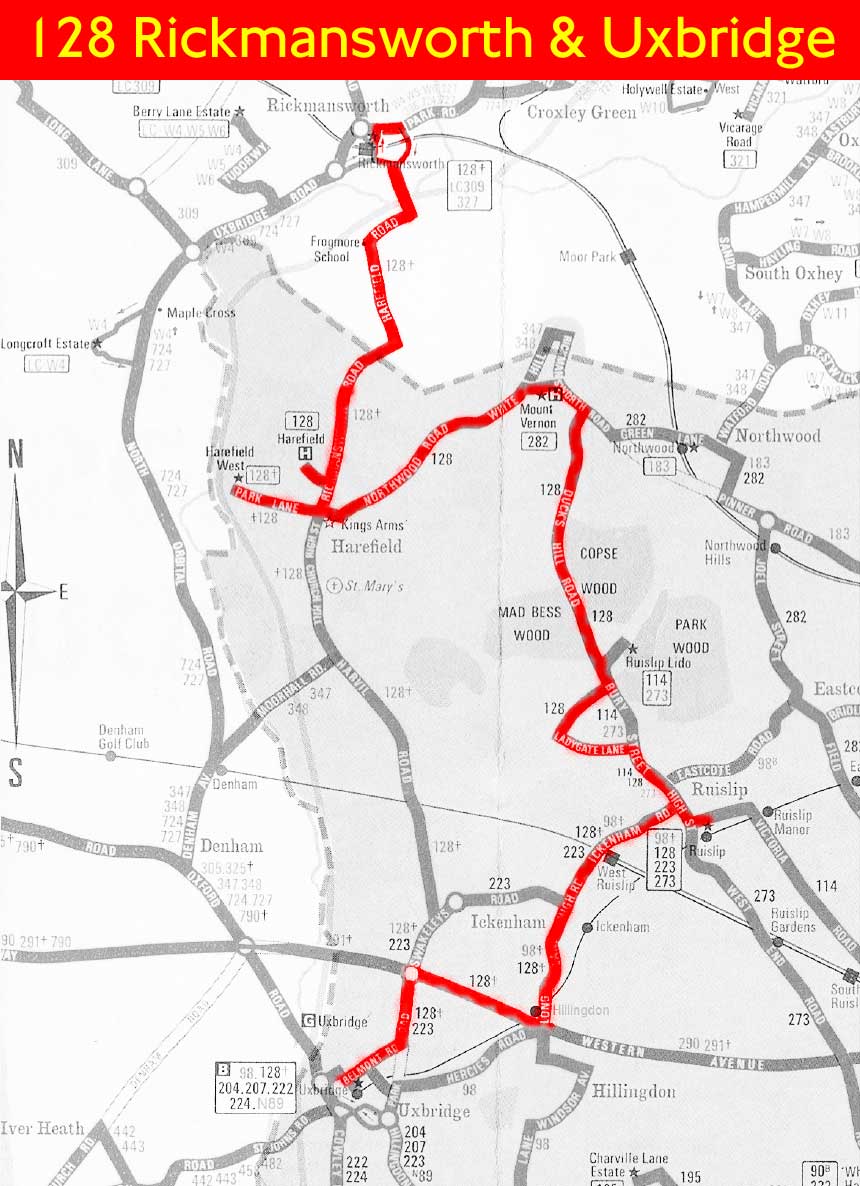 to UXBRIDGE GARAGE via Harefield High Street ,Church Hill - Harvil Road -