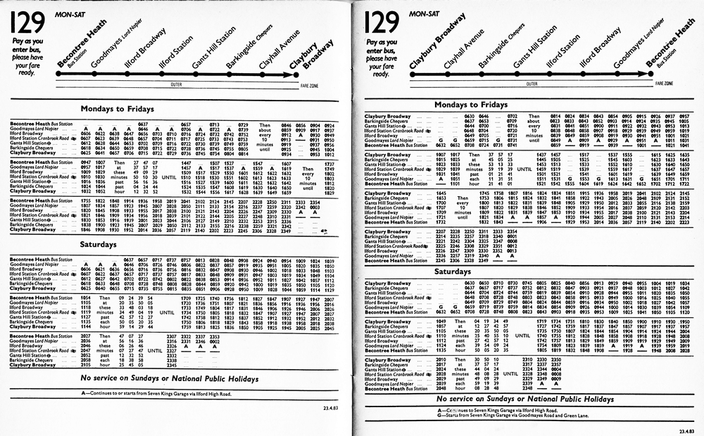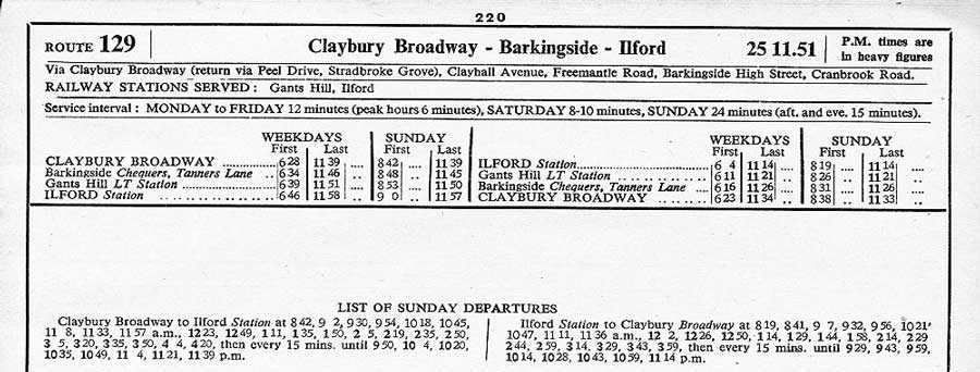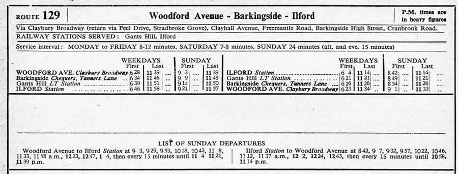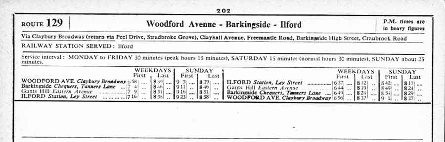 Sunday afternoon service extended from Ilford to Little Heath replacing withdrawn 25A.