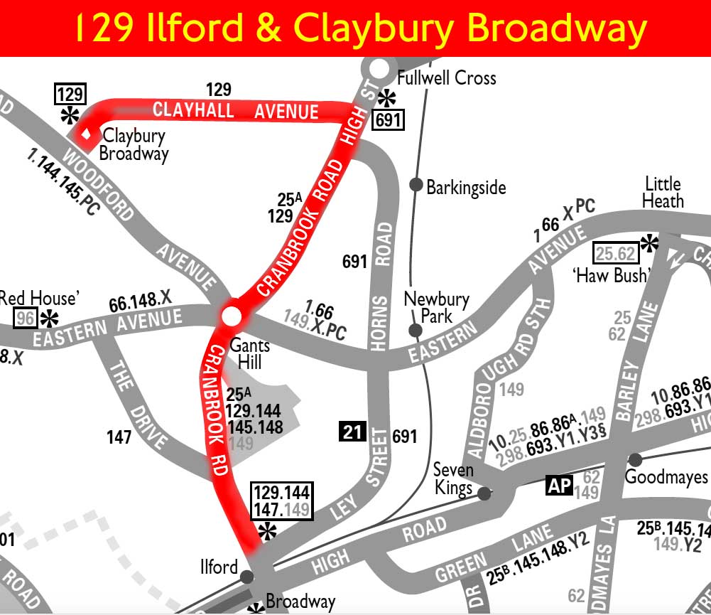 westbound to Claybury Broadway direct via Clayhall Avenue.