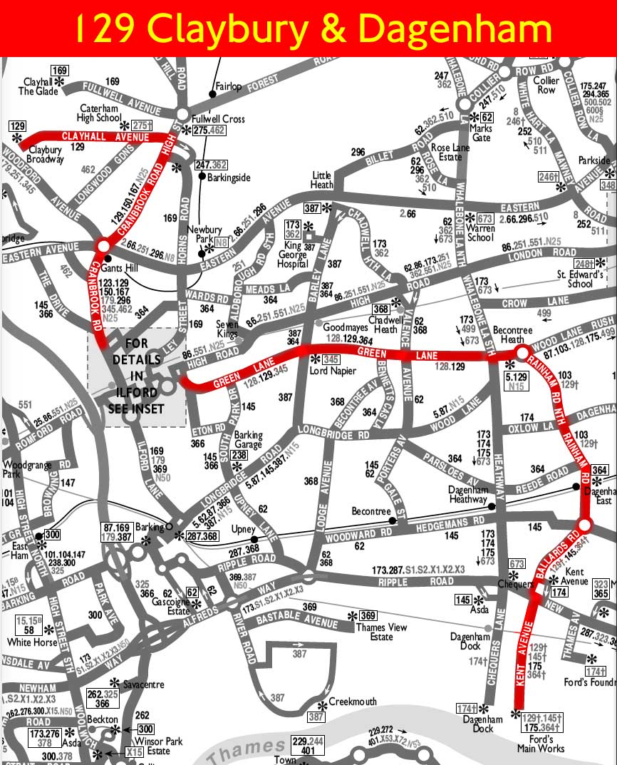 CLAYBURY BROADWAY - BECONTREE HEATH ( Mon-Sat ) - ROMFORD St Edwards Way (Mon-Fri ex evgs/Sat sh) or DAGENHAM