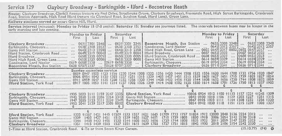 BROADWAY - ILFORD York Road - LITTLE HEATH (Sun aft jnys) - CHADWELL