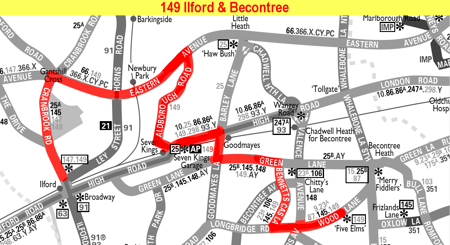 ILFORD STATION - Cranbrook Road - Gants Hill Cross- Newbury Park Station - Aldborough Road - Seven Kings - Goodmayes - Bennetts Castle Lane - BECONTREE Five Elms