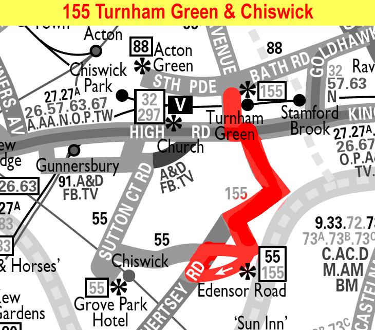 TURNHAM GREEN STN - Chiswick High Road - Chiswick Lane - CHISWICK Edensor Road ( Mon-Fri peaks / Sat )