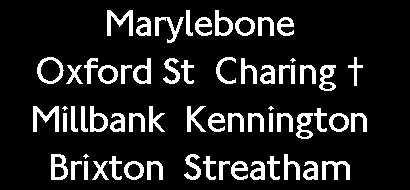 Street - Trafalgar Square - Westminster - Millbank - Lambeth Bridge - Kennington -