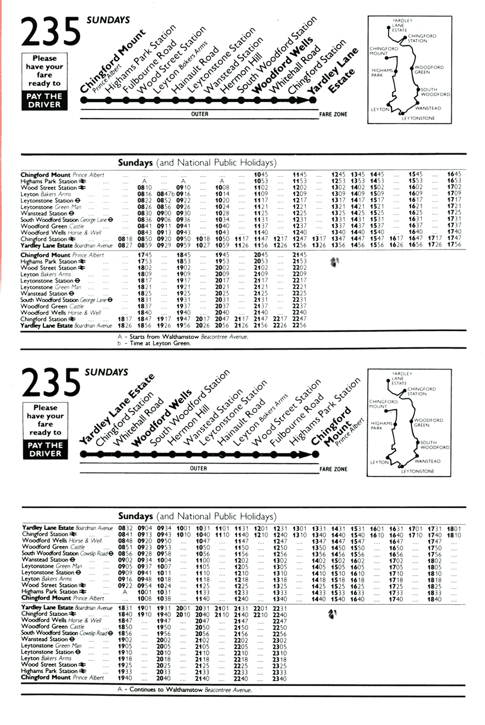 MOUNT - WOODFORD GREEN ( Mon-Sat evenings ) - WOODFORD WELLS ( Mon-Sat dayime) - YARDLEY LANE ESTATE (Suns)
