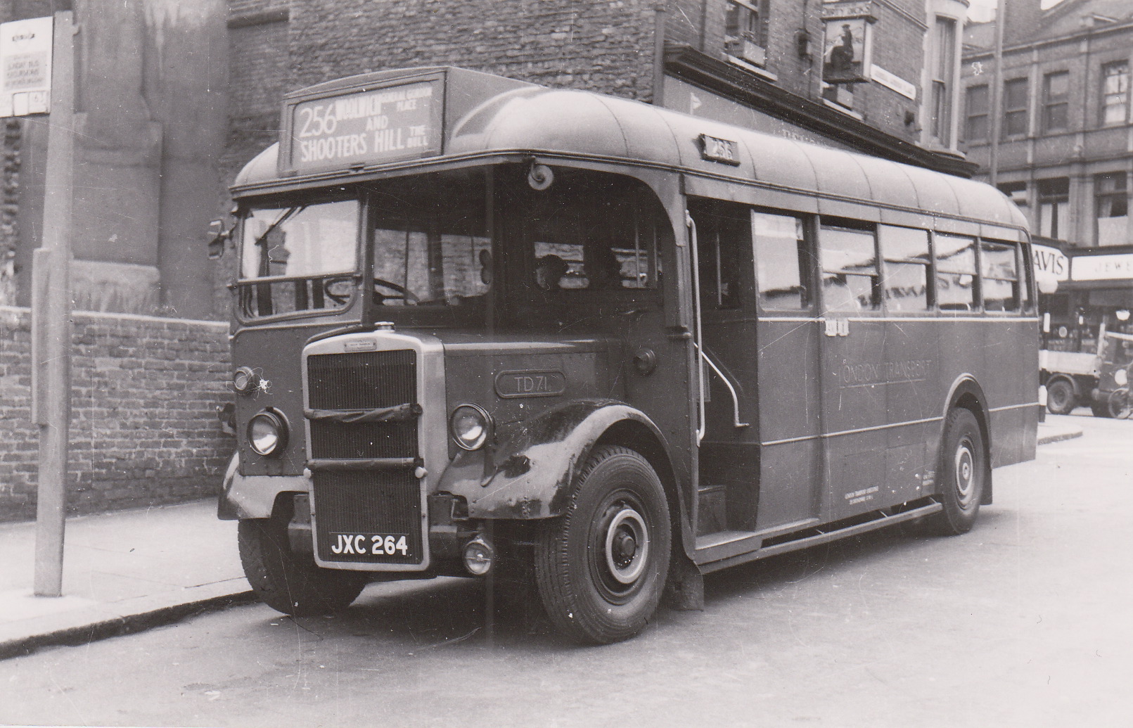 There is one particular instance where we know for certain that the official record is incorrect and that is in respect of the 256 - which started between Woolwich (General Gordon Place) and Shooters Hill (Bull) on 30th June 1954 with an allocation of 1TD. The original allocation was TD 71 - which was transferred in to AM as a hackney trainer wef 16th June - allowing a fortnight for driver familiarisation. Bearing in mind that it had been over 20 years since Plumstead had operated crash gearbox buses (all their LTs after 1931 were pre-selectors) it may have taken two weeks to ensure that enough drivers were available for the start on 30th June. Following on from this - TD 44 had been transferred in on 1st July ostensibly as a spare bus as it was officially licensed at that time. I suspect It may well have been allocated for further training to get all AM drivers up to the mark and it seems to have been de-licensed some time later in July but its next allocation was to Hornchurch from 1st August - three days before the 256 was officially converted to RTL operation. Very few garages carried engineering spare buses and AM was typical in this respect in having no engineering spare at all - with all routine maintenance being carried out by putting buses on spreadover allocations. It seems highly unlikely that TD 44 was transferred in as an engineering spare as LT would not have been so profligate - as few garages had engineering spares unless they had very large allocations or were parent garages within an engineering group. Within less than two weeks the loadings for the 256 were such that the TD could not cope and an RTL was unofficially substituted - at least on the busiest journeys. Meanwhile the CDI at Plumstead had apparently been having frantic telephone conversations with divisional HQ in order to get official permission to solve the problem once and for all. When this finally came through the official allocation was changed to 1RTL wef 4th August - by which time TD 71 had already been de-licensed - this being effective from 1st August. Curiously - AM was one of the few Leyland garages to operate TDs - almost all of the others for the most part being AEC garages. If you look closely at the picture of TD 71 you will see that it has 'dustbin lids' on the rear wheels and it was the only TD ever to carry these. It would seem that the garage engineering foeman took the trouble to fit RTL brackets to the rear wheels as they would have been readily available in stores for his RTLs. He must have had them whipped off PDQ when the bus was transferred to Norbiton as there is no record of it running from there with them fitted.