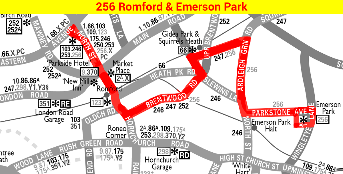 ROMFORD Parkside Hotel -Romford Station - Brentwood Road - Gidea Park - Haynes Park Road - Parkstone Road - EMERSON PARK Wingletye Lane
