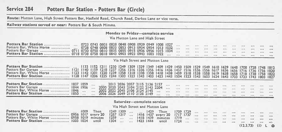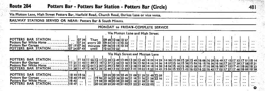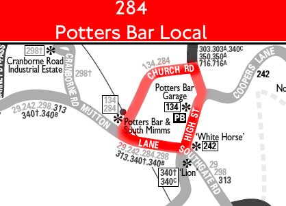 POTTERS BAR STN - Mutton Lane - Potters Bar Garage - POTTERS BAR STN (Mon-Fri am)