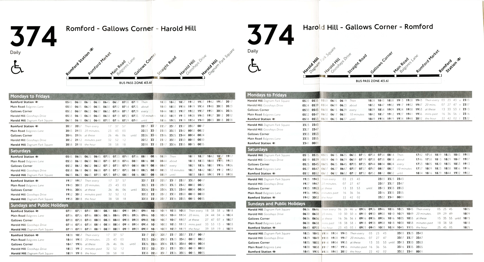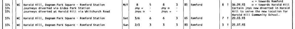 Monday to Saturday - relief point was Romford Station Stand prior to 19:00 hrs after that Romford North Street Garage.
