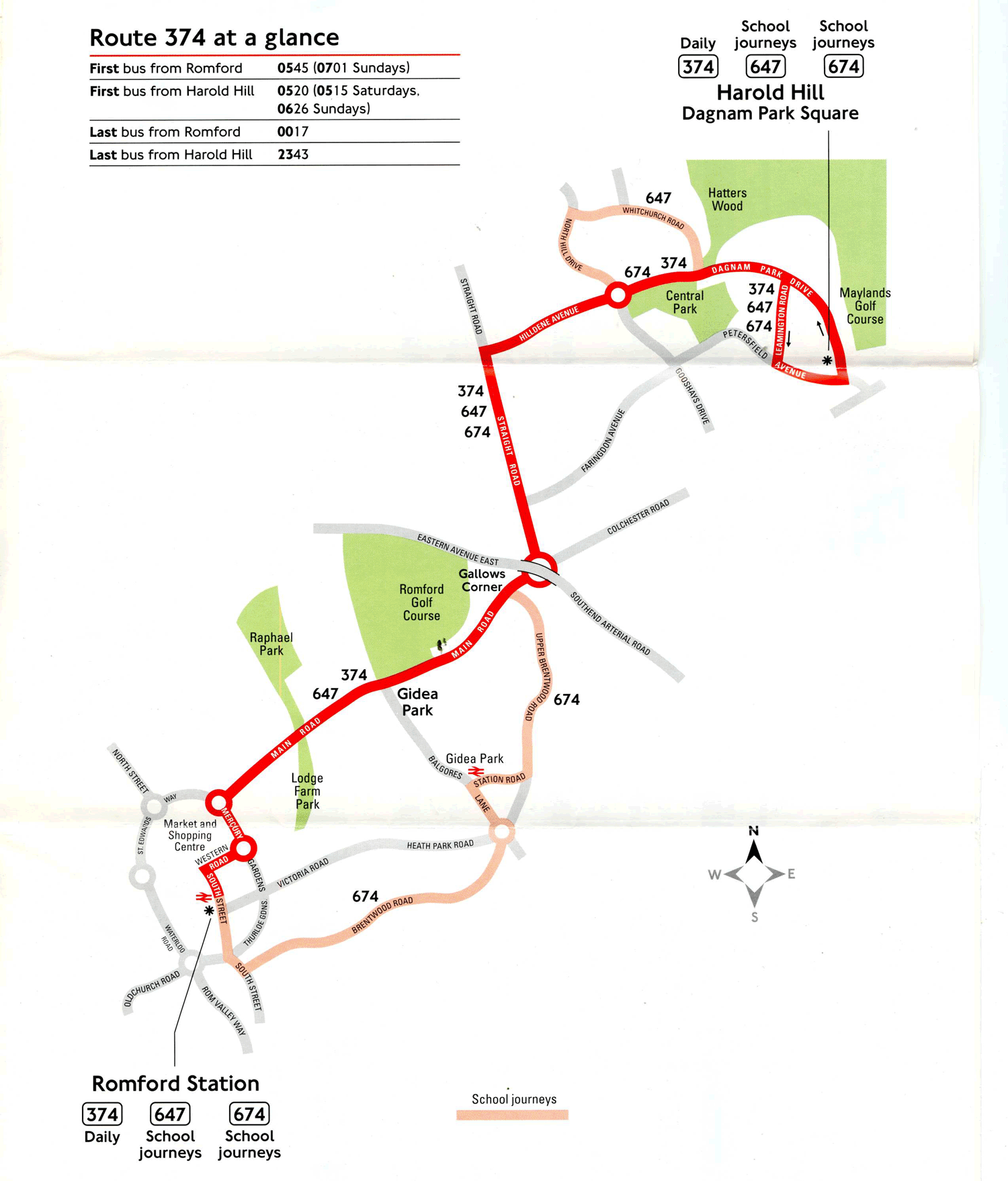 SDO jnys via Gidea Park Stn and Brentwood Road towards Romford am and towards